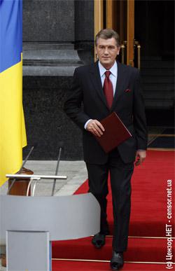 Но результаты уже принципиально не изменятся, поэтому утром в среду президент решил выступить с заявлением по поводу выборов. Украинский лидер тянул с выходом к прессе: сначала он собирался появиться в 12.00, затем официальное заявление было перенесено на 13.30. В итоге перед прессой Ющенко появился только в начале третьего. И сразу же заговорил про «ширку».