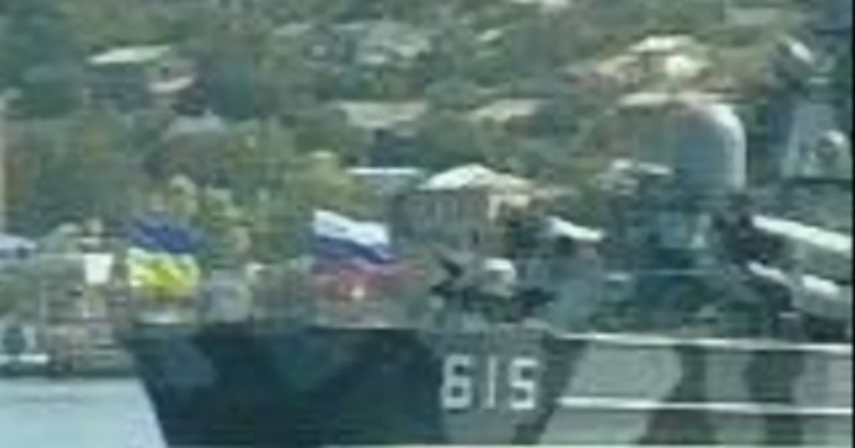 По требованию МИД Украины над ракетным кораблем Бора, открывшим парад, были поднят флаг Украины. На остальных кораблях были только российкие флаги и флаги ВМФ СССР.