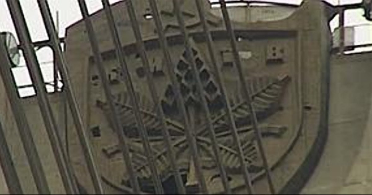 Сооружение из металла и арматуры в аварийном состоянии нависает над столицей на высоте более ста метров.