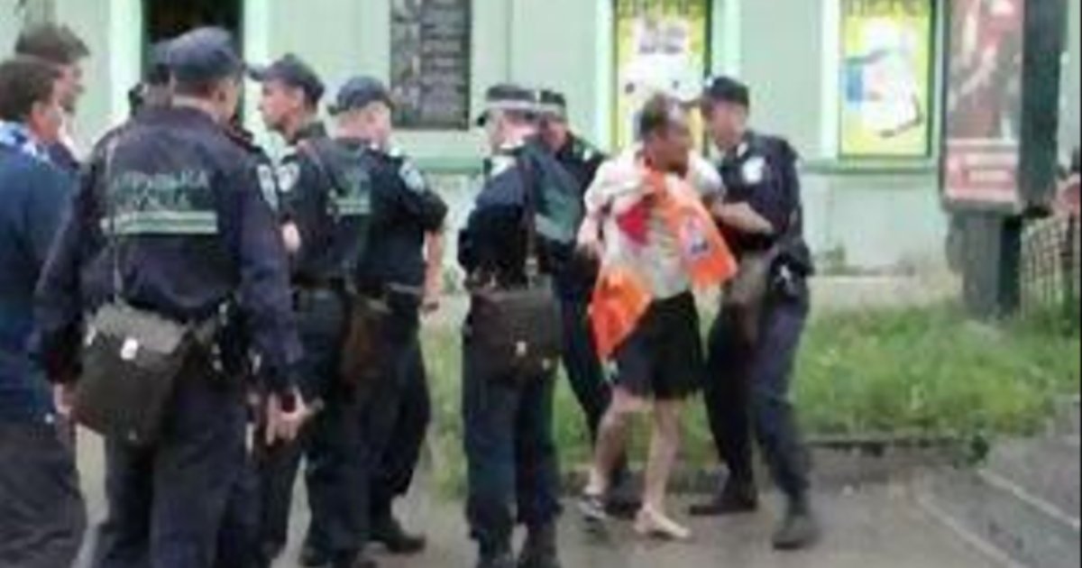 Кто первым начал потасовку, не понятно. Однако около десяти сотрудников милиции быстро скрутили активных участников драки.