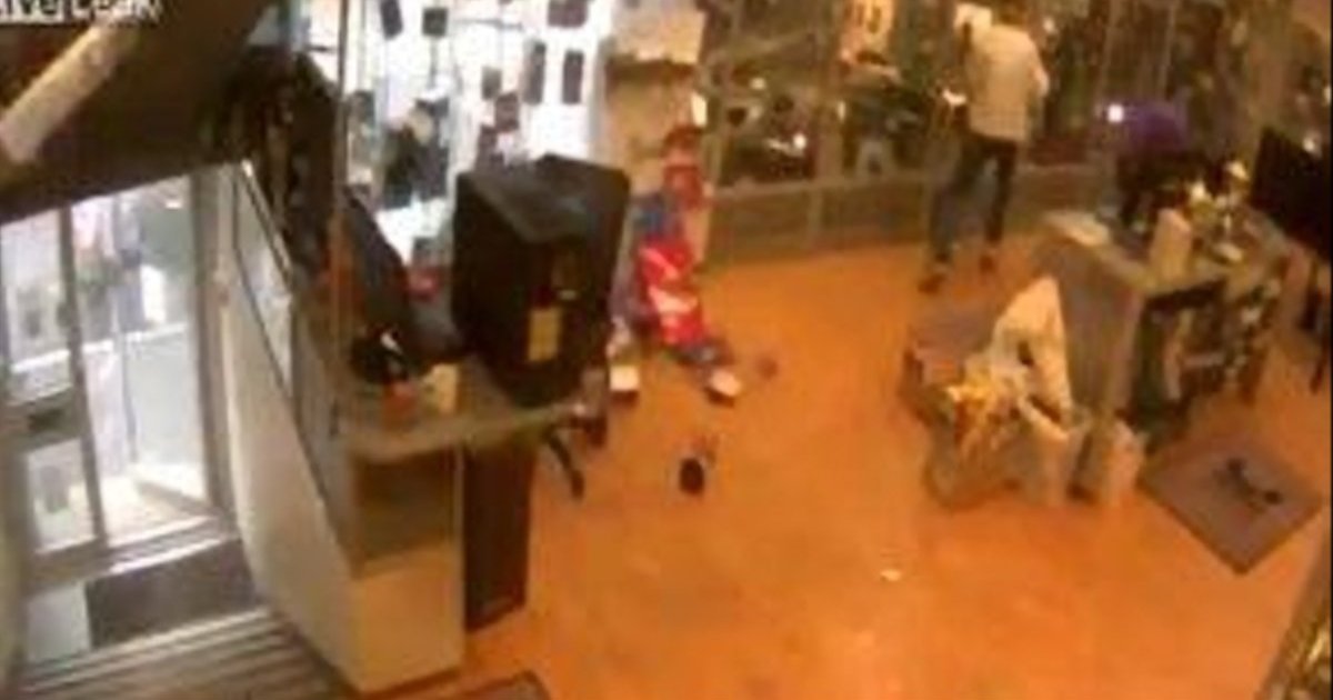 В Норвегии опубликовано видео, на котором . Видео снято камерами наблюдения магазина, расположенного рядом с правительственным зданием. На видео видно, как от мощного взрыва треснуло стекло в магазине. Люди наперебой пытались выбежать на улицу, не понимая, где именно сработала бомба.