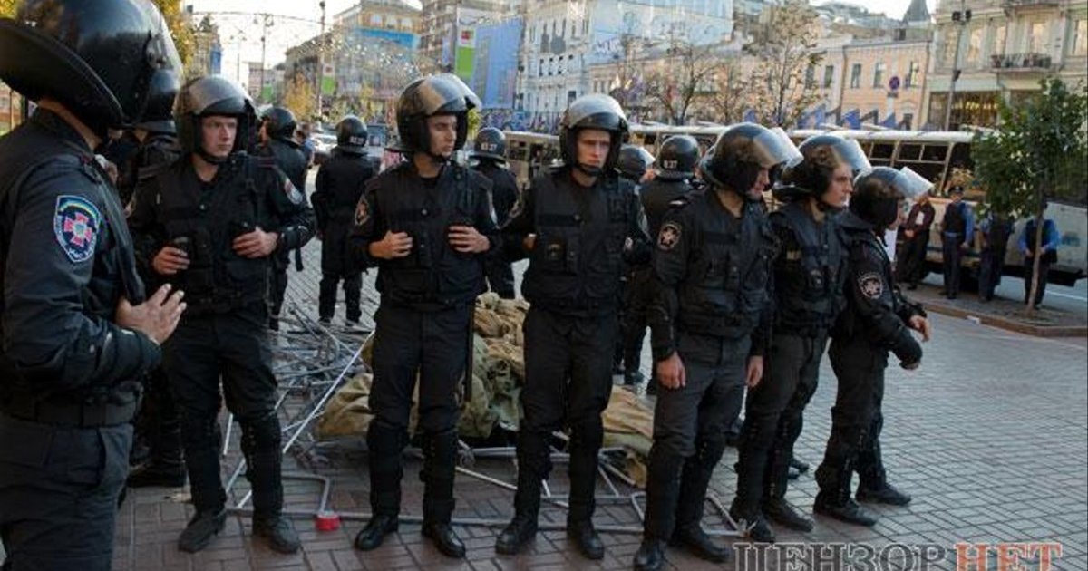 Бойцы спецподразделения "Беркут" снесли все палатки, который сторонники экс-премьера Юлии Тимошенко установили на улице Крещатик – на противоположной от Печерского районного суда стороне.