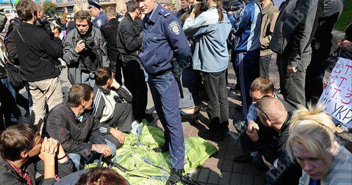 Милиция применила физическую силу к гражданам, которые пытались установить палатки в поддержку Юлии Тимошенко на противоположной от Печерского райсуда стороне Крещатика.