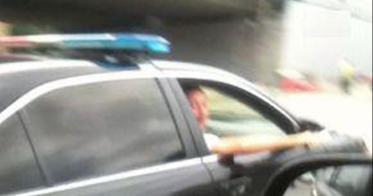 Гаишники и охрана кортежа Азарова матом разгоняют водителей на дороге. Тому, кто ослушался - жезлом по капоту и ногой по зеркалу заднего вида.