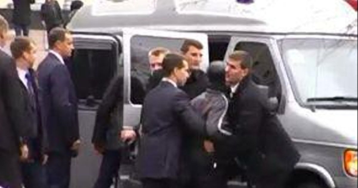 На кортеж главы Верховной Рады Владимира Литвина бросился митингующий. Мужчина подбежал к автомобилю в то время, когда Литвин садился в микроавтобус. Охрана спикера обхватила мужчину руками и оттеснила его от машины.
