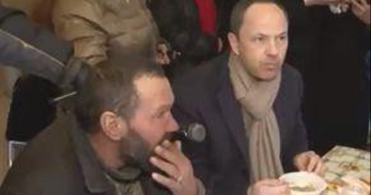Тигипко попиарился с бомжом: Давайте, Саша, кушайте кашу. + ВИДЕО.