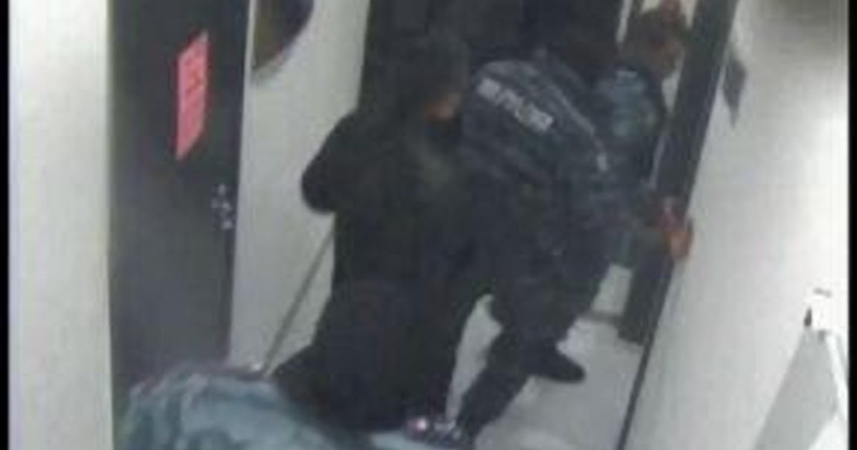 На видео видно, как "беркутовцы" в масках пробегают коридорами, а через достаточно короткое время медленно возвращаются обратно.