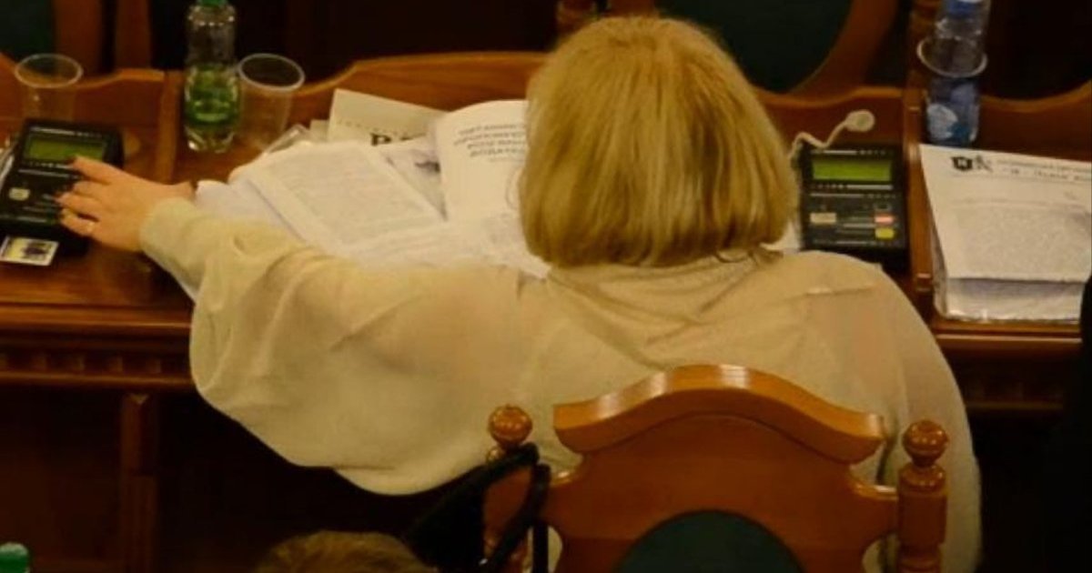 Об этом сообщает Цензор.НЕТ со ссылкой на Zaxid.net. В частности во второй половине дня удалось зафиксировать на видео, как "свободовка" Ирина Шалаковская голосовала за своего коллегу, сидящего слева от нее, Ивана Гринду. Когда Гринда выходил из сессионного зала, женщина давила кнопки системы для голосования - сначала на своем, а затем и на его месте.