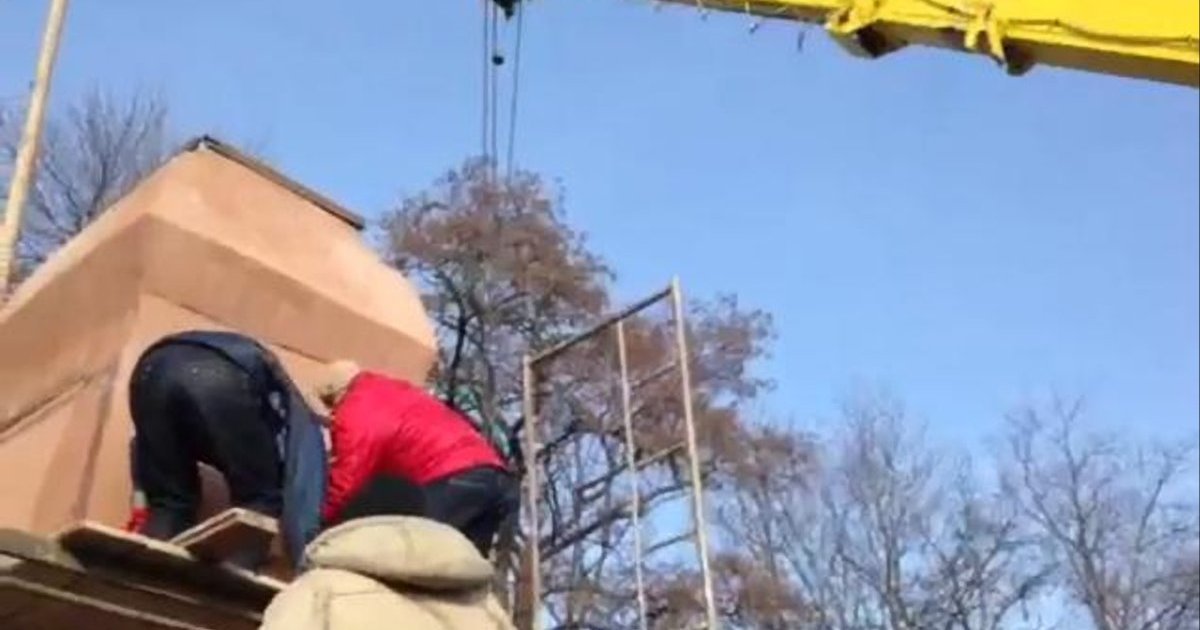 После продолжительной драки коммунисты отказались устанавливать постамент.