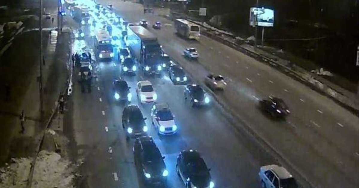 "Только что ехал в сторону Троещины -начиная от остановки "Московский мост (или как они правильно) справа на обочине отбойник, снесенный в длину метров на 100, рейсовый автобус, стоящий почти у обрыва в Десенку и чувак, живой, но покалеченный на крайней правой на асфальте", - написал на форуме zugunder.com пользователь "медбрат".