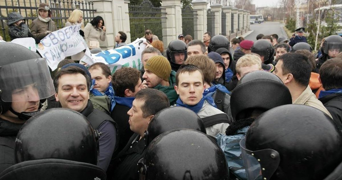 Столкновениями с "Беркутом" закончилась акция протеста активистов "Демократического альянса" в Межигорье возле резидентции президента Виктора Януковича.