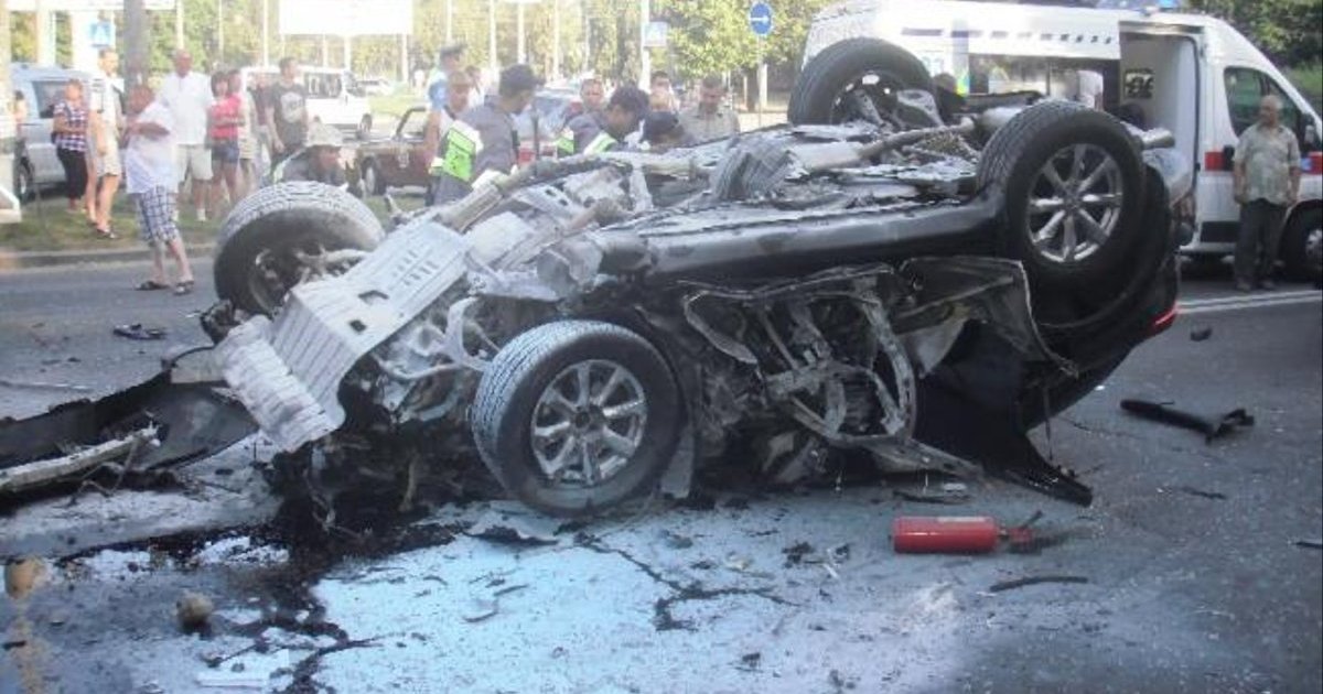Автомобиль Infiniti FX35, в котором ехали два сотрудника СБУ и две девушки, двигаясь на запрещающий сигнал светофора, повредил заднюю часть автомобиля Toyota Corolla, переднюю фару и бампер автомобиля Opel Zafira, столкнулся с автобусом «МАЗ» и перевернулся, сообщает Цензор.НЕТ.