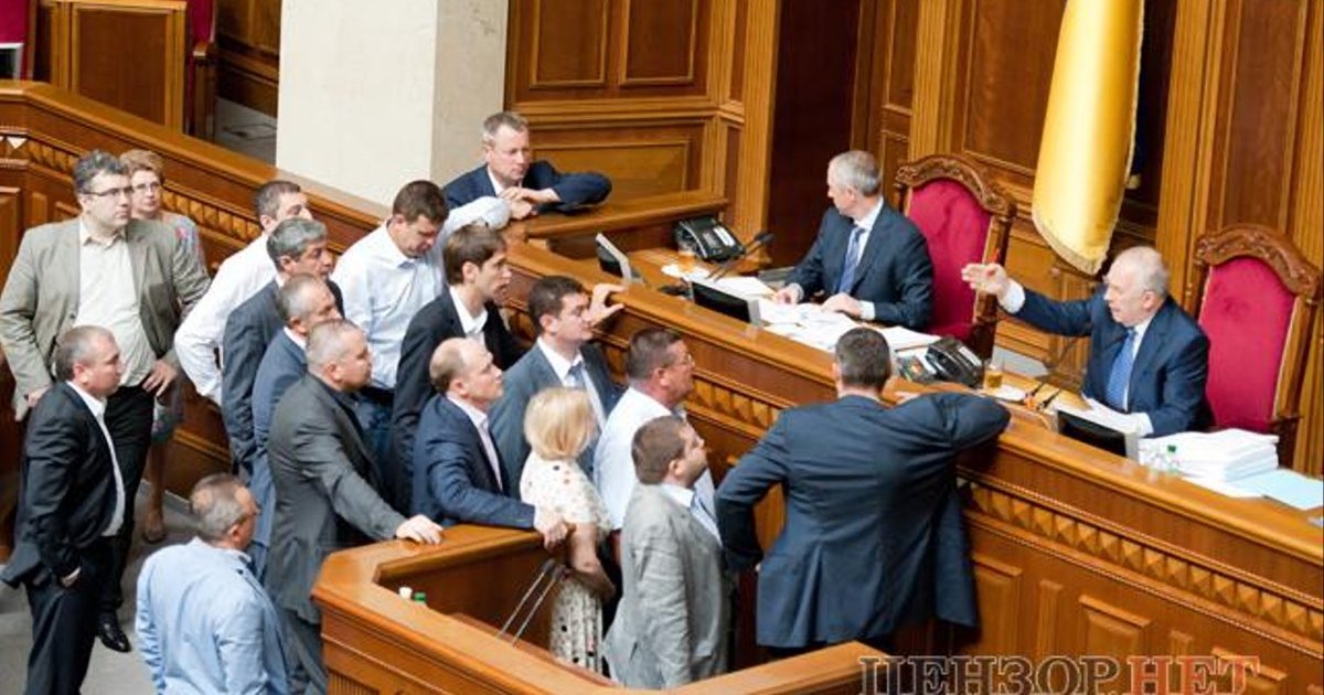 Оппозиционные фракции заблокировали президиум Рады. Председательствующий объявил перерыв на 15 минут.