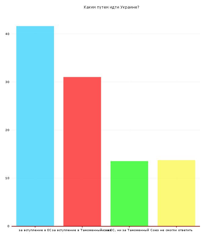 41,6% граждан поддерживают вступление Украины в Европейский Союз, 31% - в Таможенный союз Единого экономического пространства России, Беларуси и Казахстана.