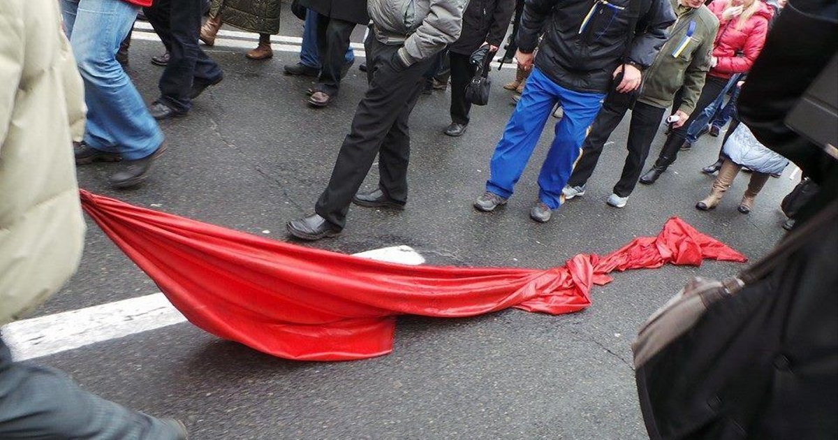 Активисты во главе с народным депутатом от «Свободы» Андреем Ильенко снесли агитационную палатку Коммунистической партии Украины, расположенную возле памятника Ленину на бульваре Шевченко в Киеве.