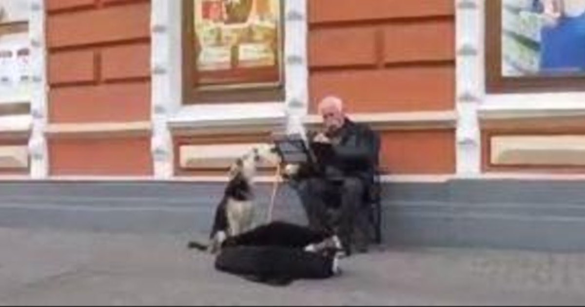 В Днепропетровске сформировался удивительный музыкальный уличный дуэт - пес неопределенной породы выступает в роли певца, его хозяин играет на трубе.
