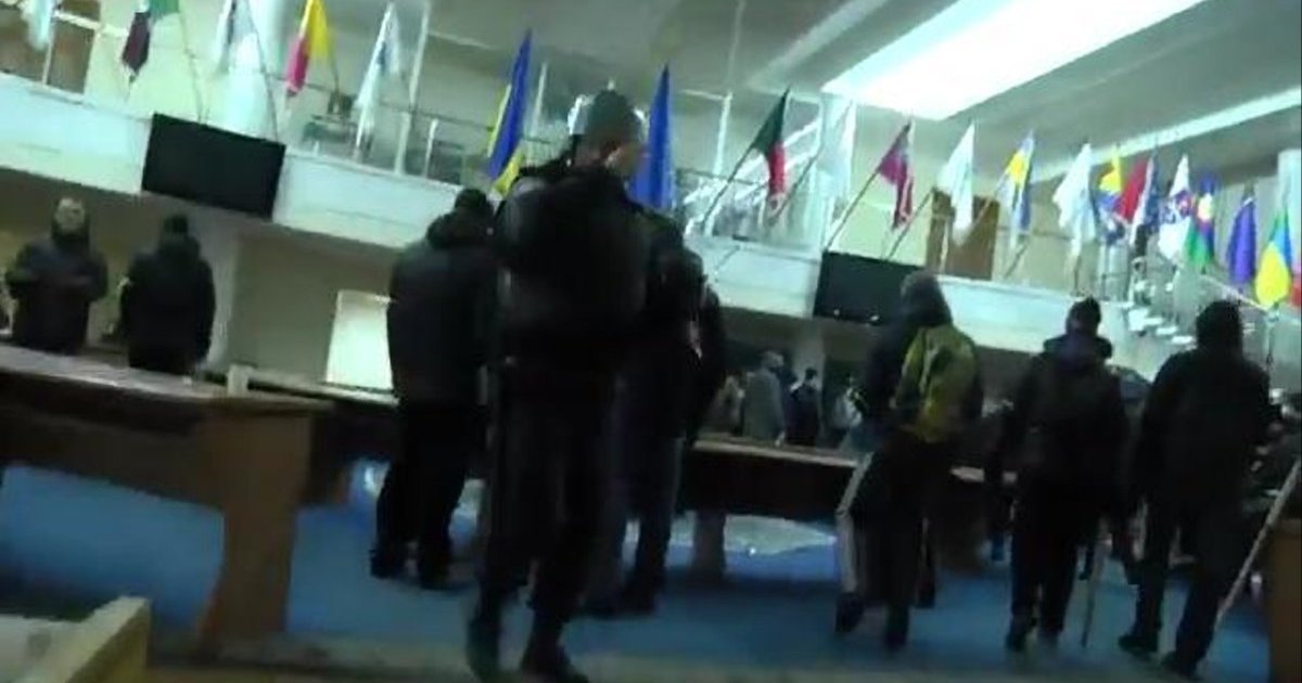 "Титушки проходят инструктаж и получают экипировку в большом зале Днепропетровской облгосадминистрации", - сказано в описании видео.