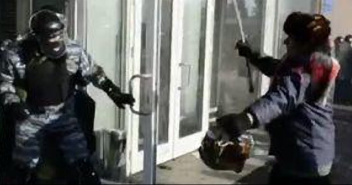 Пожилой мужчина пытался противостоять двум бойцам "Беркут" возле Запорожской ОДА.