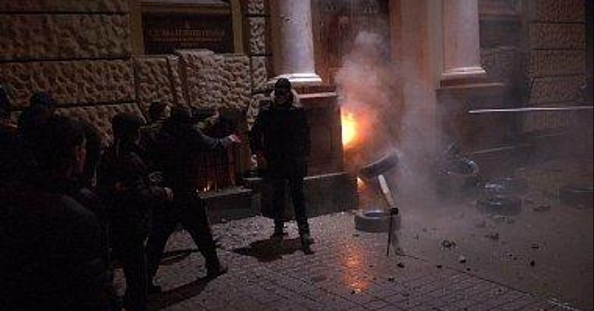 Управления СБУ люди взяли штурмом, выломали двери, бросали зажигательные смеси. Как объяснили протестующие, они искали документы на активистов Майдана.