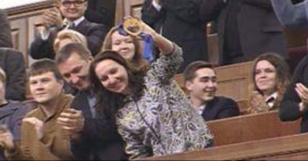 Парламент стоя приветствовал чемпионку Олимпиады в Сочи Елену Пидгрушну. ВИДЕО