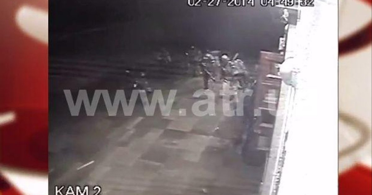На этих кадрах видно, как в здание заходят люди в камуфляже и с оружием. Перед тем, как войти, они бросили внутрь, судя по всему, светошумовую гранату, сообщает Цензор.НЕТ со ссылкой на УНИАН.