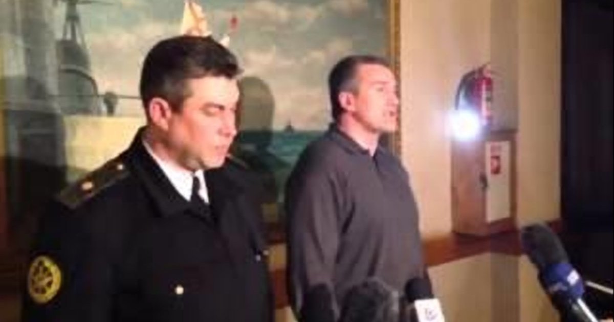 Перед этим самоназначенный марионечный премьер-министр АР Крым Сергей Аксенов зачитал свой приказ: "Приказываю всем военнослужащим ВМС Крыма, которые несут службу на территории Севастополя, считать не подлежащими исполнению любые решения, приказы и распоряжения самопровозглашенных органов и правительственных лиц Украина, в т.ч. и незаконно назначенного министра обороны Тенюха И.И. ".