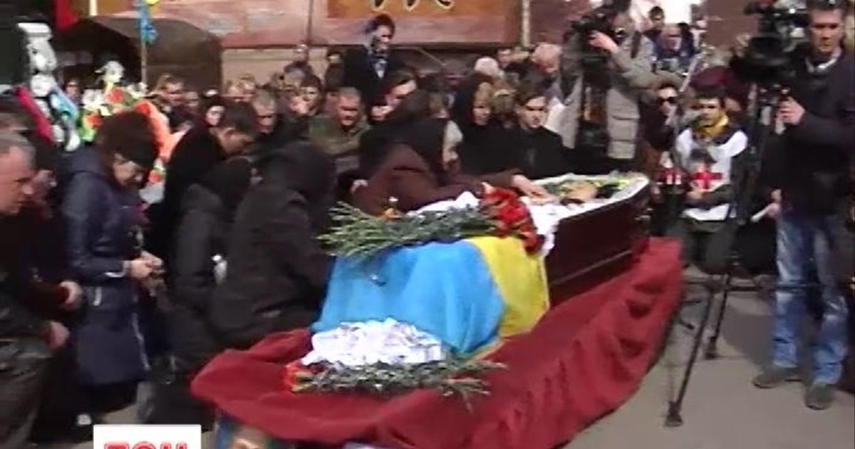 После прощальных речей люди на площади стали на колени, раздавались возгласы "Героям слава!". Гроб с телом погибшего на руках несли через весь город к Центральному кладбищу, дорогу устилали цветами. Во время шествия по улицам Главной и Героев Майдана жители близлежащих домов выходили с самодельными плакатами «Героям слава», «Герои не умирают».