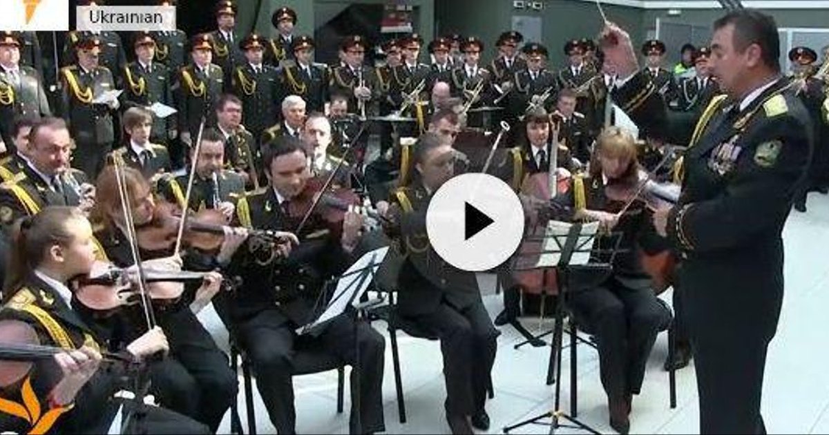 В аэропорту «Киев» (Жуляны) 180 музыкантов Национального Президентского оркестра, Академического ансамбля песни и танца вооруженных сил Украины и хора Национального университета культуры сыграли «Оду к радости» Людвига Бетховена.