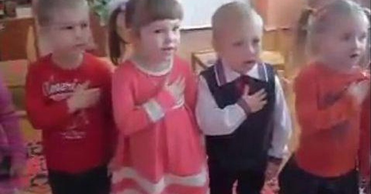 Как видно на видео, которое появилось на YouTube вчера, малыши поют гимн с огромной гордостью, положив руку на сердце. Можно также отметить, что дети, несмотря на свой маленький возраст, очень хорошо знают текст гимна наизусть, и исполняют его без запинок.