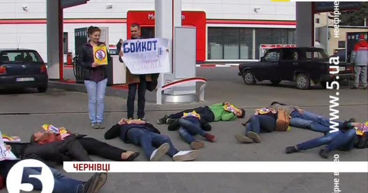 В Черновцах активисты продолжают призывать к бойкоту российских товаров. Десять студентов-евромайдановцев в одном из супермаркетов города устроили флэш-моб.