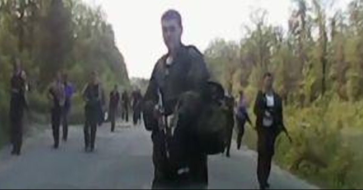 Вооруженная толпа боевиков перебегает дорогу в Луганской области. ВИДЕО
