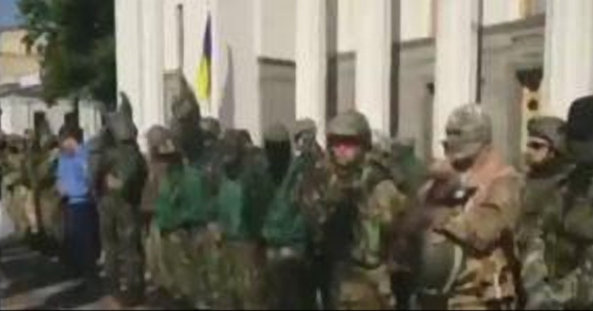 Под Верховной Радой усилены наряды милиции, стоит шеренга батальона "Донбасс".