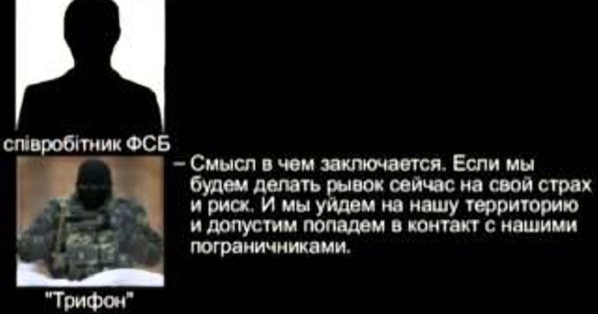 На записи собеседники ищут способ для побега «Трифона» с украинской территории. Сложности вызваны тем, что граница со стороны Луганской области, по их информации, контролируется украинскими военнослужащими.