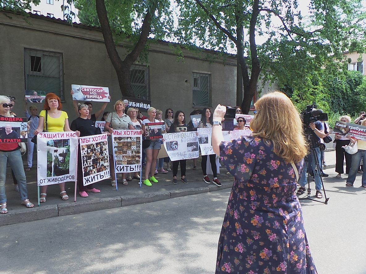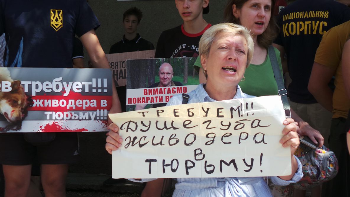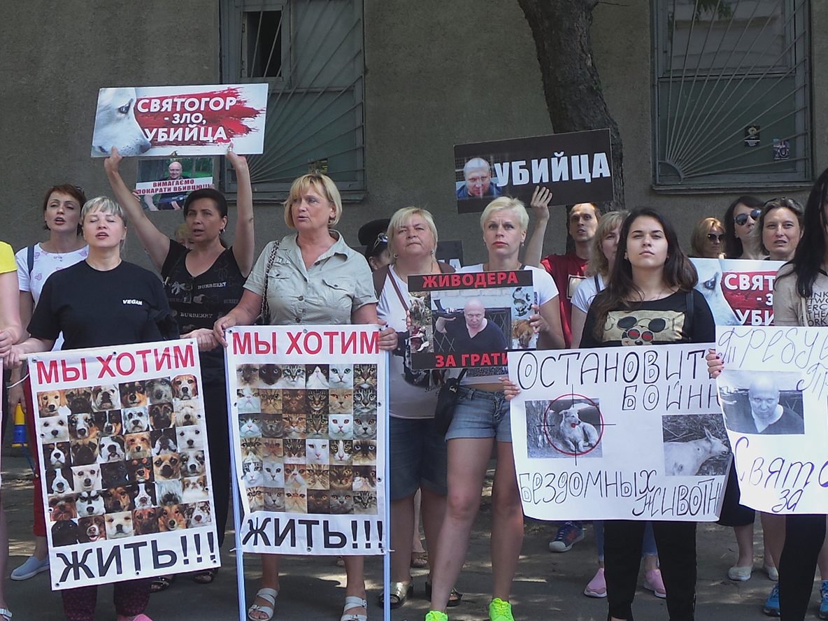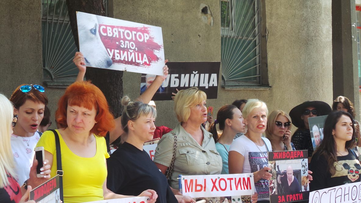 Тем временем, под зданием суда проходит акция зооактивистов, а также "Нацкорпуса" с требованием привлечь Святогора к ответственности.