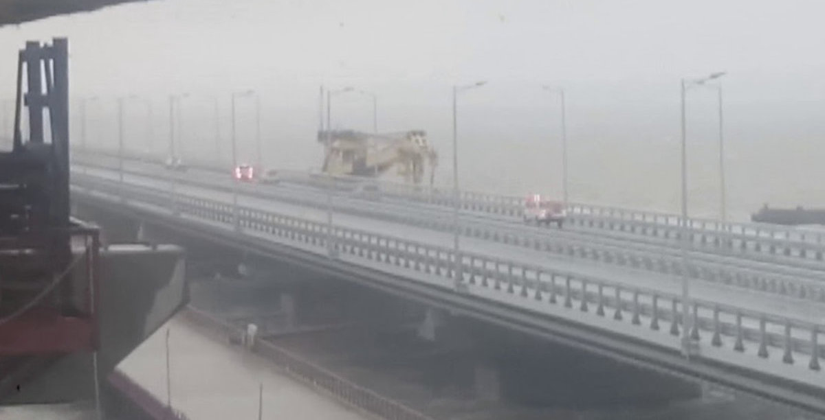 Очевидцы выложили в сеть видео столкновения плавкрана с Керченским мостом. ВИДЕО