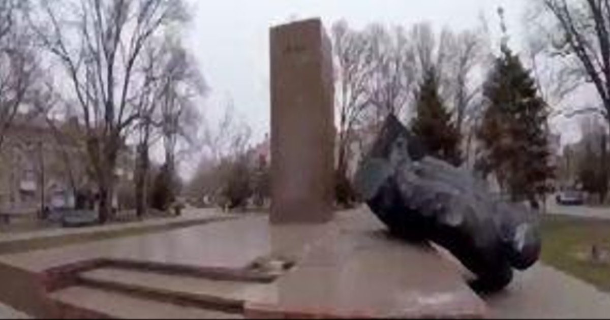 В Бердянске снесли памятник Ленину на Приморской площади. Произошло это примерно в семь часов утра.