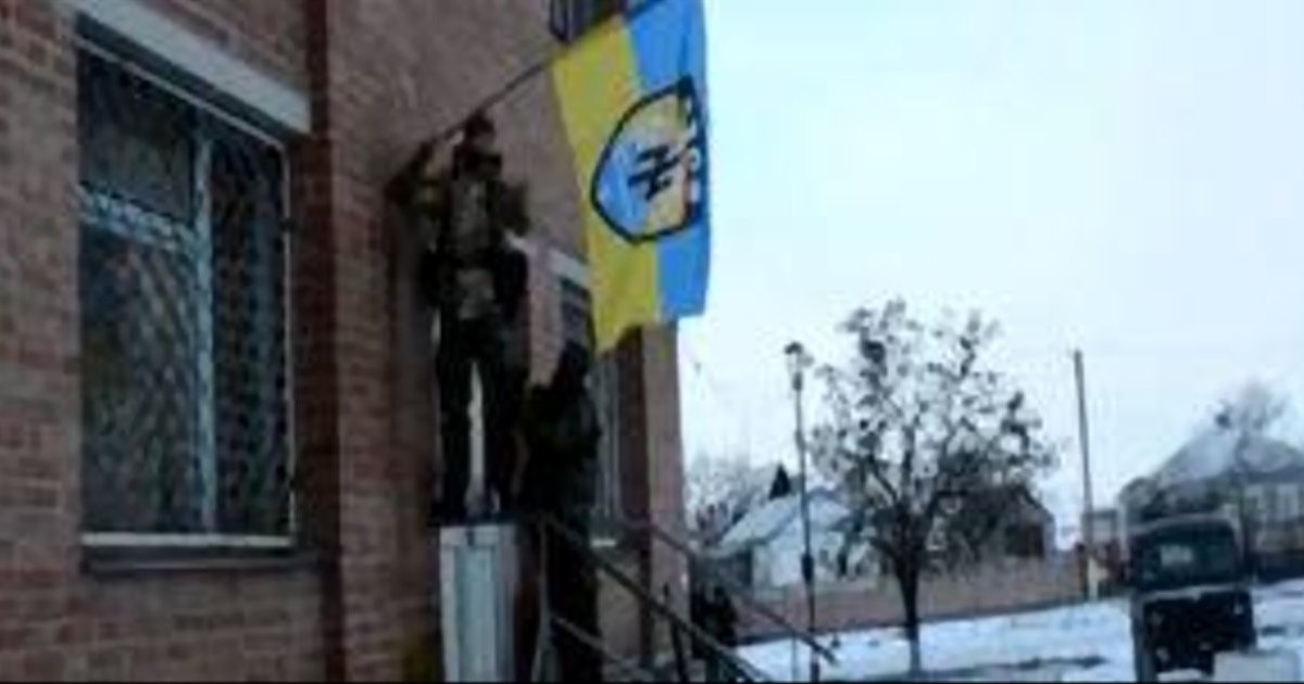 Бойцы "Азова" устанавливают полковой флаг в центре Коминтерново. ВИДЕО