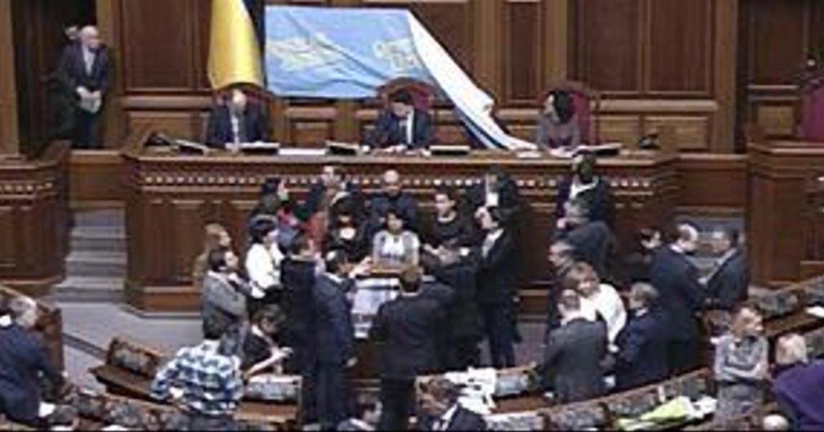 Народные депутаты заблокировали трибуну парламента и требуют внести в повестку дня законопроект, который даст возможность получить в бюджет дивиденды по компании "Укрнафта".