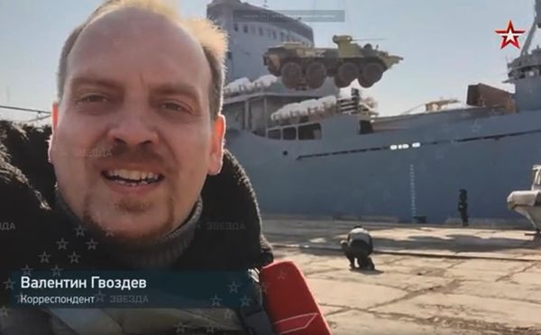 "Кацапский пропагандон года": Госпогранслужба поблагодарила пропагандиста Гвоздева за репортаж из Бердянска об уничтоженном сегодня корабле "Орск". ВИДЕО