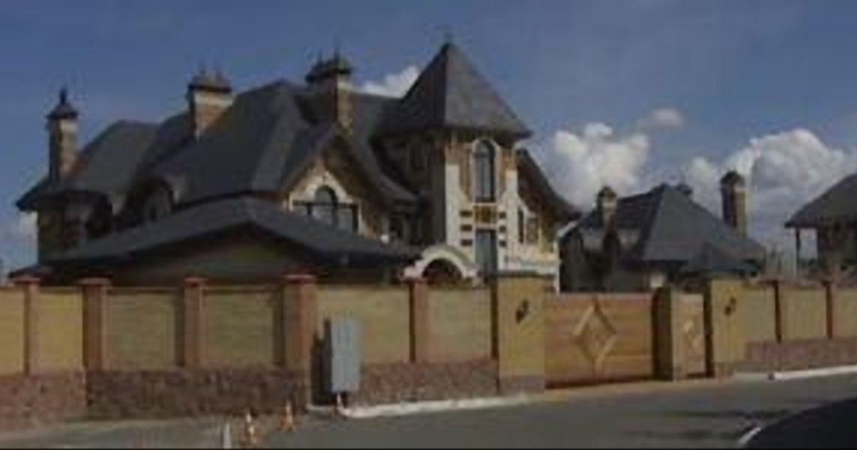 Вот один из них. Село Подгорцы около Киева. Среди простых дачных домиков эта постройка стоит особняком. Высокий кирпичный забор, за ним слышен лай собак. На территории - и сауна, и дом садовника и даже теннисный корт... Официально дом зарегистрирован на мужа бывшего министра. Охранник в домофон говорит, что его тут давно уже не видели.