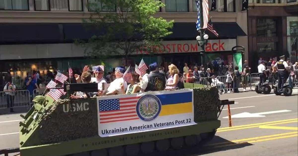 Украинско-американские ветераны прошли по одной из главных улиц центра Чикаго, впереди несли украинский и американский флаги. Публика аплодисментами приветствовала колонну, некоторые выкрикивали "Ukraine!", Ветераны в ответ скандировали "Слава Украине!".