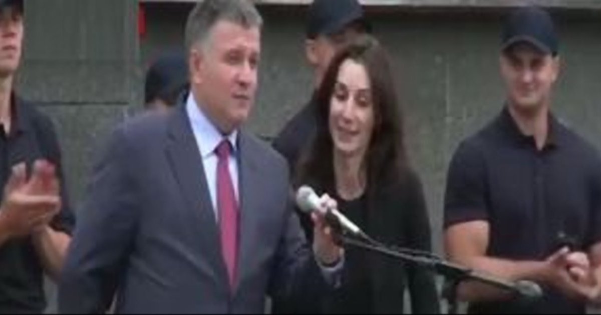 Министр МВД Арсен Аваков во время первого выпуска патрульных полицейских сделал подарок для первого заместителя Эки Згуладзе.