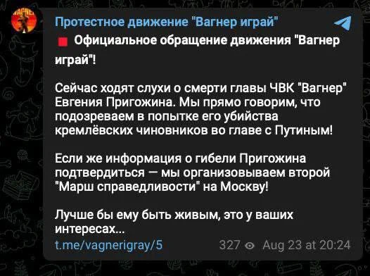 Как сообщал Цензор.НЕТ, 23 августа 2023 года в Тверской области РФ потерпел крушение пассажирский самолет. В нем находился главарь ППК "Вагнер" террорист Пригожин.