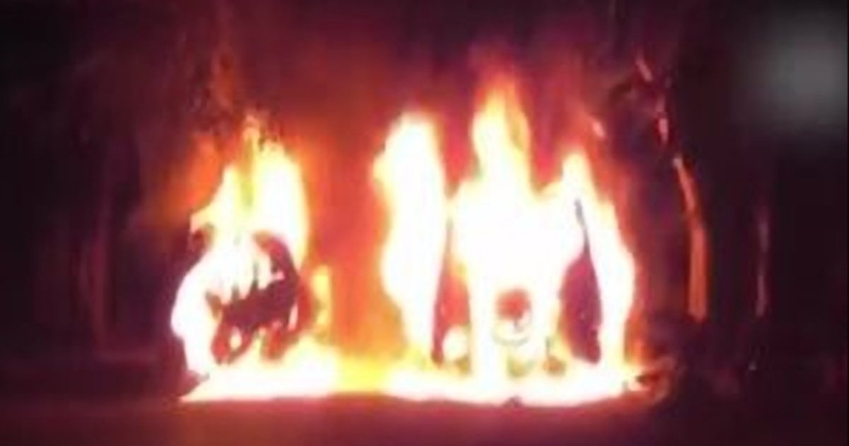 Бензовоз перевернулся и загорелся, когда его водитель пытался избежать столкновения с пассажиром, внезапно вышедшего на проезжую часть