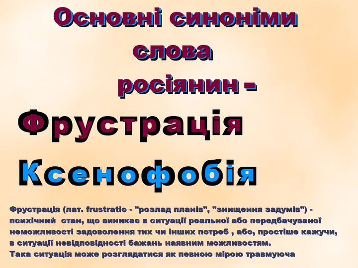 Президент Чеченской Республики Ичкерия Джохар Дудаев: «Русизм - это особая форма человеконенавистнической идеологии, основанная на великодержавном шовинизме, полной бездуховности и безнравственности. Отличается от известных форм фашизма, расизма, национализма, особой жестокостью, как к человеку, так и к природе… Принцип действия - уничтожение всего и вся, тактика выжженной земли. Отличается шизофренической формой мании мирового господства. Обладая рабской психологией, паразитирует на ложной истории, на оккупированных территориях и угнетаемых народах. Русизму характерен постоянный политический юридико-правовой и идеологический терроризм».