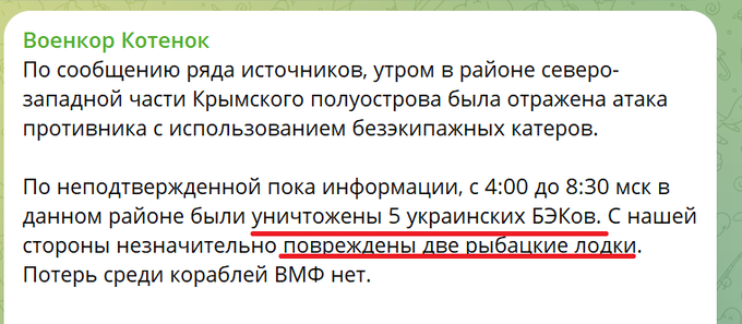 Ну і така думка: якщо "банк цілей" проріджений вже настільки, що почали вибивати катери "до 12 метрів", то це означає, що кацапським баржам, що "захищають" (як бони) кораблі в Новороссійську та кримський міст, скоро буде виписана путівка на зустріч з крейсером "мацква". І в тому Новороссійську або будуть нові "фраги" кораблів в ЗСУ, або бухта новороссійська перестане бути судоплавною.