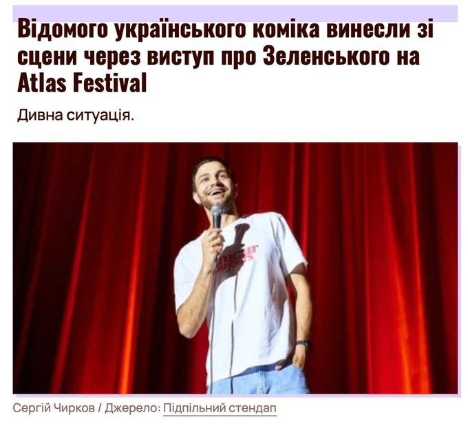 Він зачитав зі сцени промову Володимира Зеленського з дебатів у 2019 року, в якій той журив Петра Порошенка через відсутність рівності усіх перед законом, через відсутність покарань для корупціонерів і відмову зняти недоторканість з депутатів.