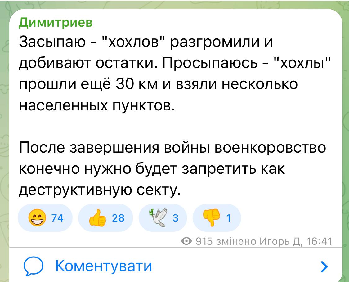 https://www.understandingwar.org/backgrounder/russian-offensive-campaign-assessment-august-7-2024 @ "Сили оборони мають незначні успіхи на Донеччині. Вони змогли відбити позиції в районі Часового Яру і демонструють просування. ...зазначається, що 7 серпня українські захисники відбили обмежені позиції поблизу Часового Яру, а геолокаційні кадри показують, що Сили оборони незначно просунулися через канал Сіверський Донець - Донбас і відновили деякі позиції у лісництві Ступки Голубовські 2 на південь від Часового Яру.".