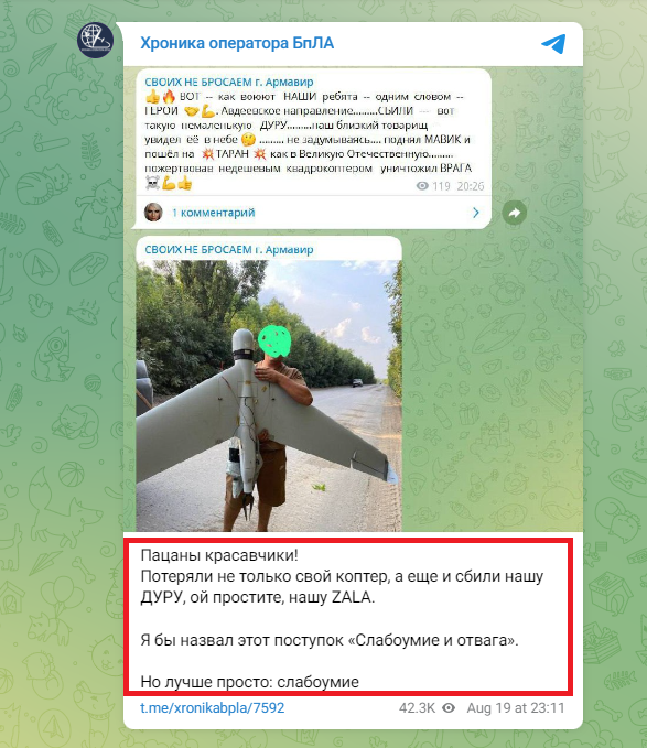 Украинские защитники атаковали дроном-камикадзе российского захватчика. Он пытался сбить беспилотник из автомата, однако тщетно.