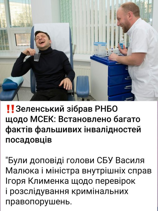 "Провел СНБО. По многочисленным фактам нарушений МСЭК и фальшивых инвалидностей для чиновников.